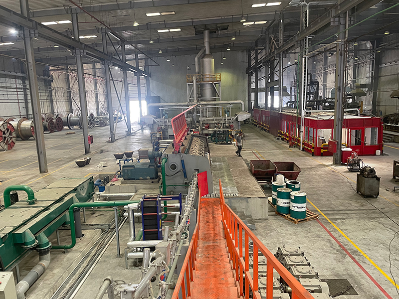 يُستخدم خط الإنتاج هذا بشكل أساسي لإنتاج الكابلات وقضبان الألومنيوم عالية التوصيل للكهرباء بأقطار 9.5 مم، و12.5 مم، و15 مم، والتي تلبي المعايير الأوروبية والأمريكية لسلسلة EC1350، وسلسلة 3#، 5# (5005، 5154)، 6# (6101/6201)، و8# (8176، 8030).